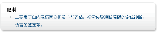 在临床医学上,电生理检查是神经系统检查的延伸,是组织化学、生物化学及基因等检测不可替代的检测技术。用于确定周围神经肌肉系统和中枢神经系统的功能状态及可疑病变,检出亚临床病灶,对病损精确定位。对周围神经疾病、脊髓病、脱髓鞘病、颈椎病、糖尿病、各类神经损伤、康复治疗评价、感觉及运动功能评价等的诊察确定。目前广泛应用于神经内外科、手外科、骨科、小儿科、康复科、内分泌科、肛肠科、耳科、眼科、泌尿科、性功能科、法医鉴定、职业病及运动医学等。